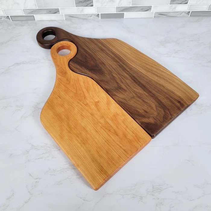 Each person selects a different wood species and designs a unique shape that nests perfectly with their partner's board. Learn shaping, sanding, and food-safe finishing techniques to create a stunning serving duo.